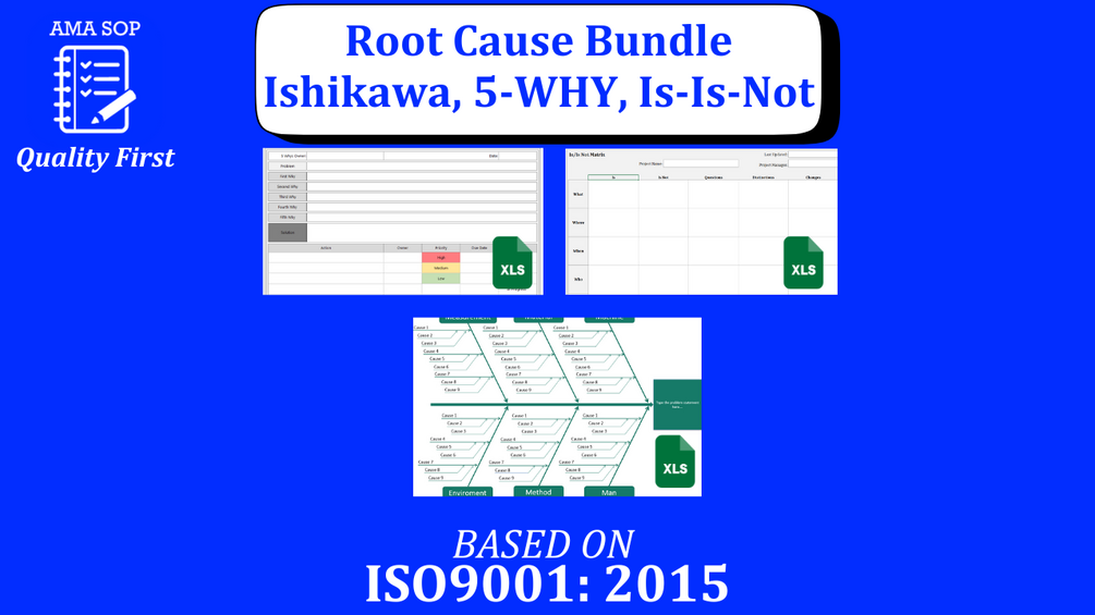 Root Cause Analysis Excel Templates Bundle - Is-Is Not Matrix, 5 Whys, & Fishbone Diagram (ISO 9001 Compliant)