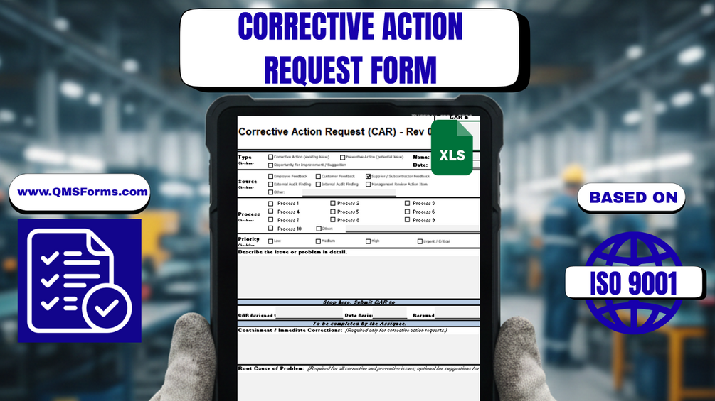 ISO 9001 Corrective & Preventive Action Request (CAR) Form Template - Customizable Excel Workbook (Clause 10.2 Compliant)